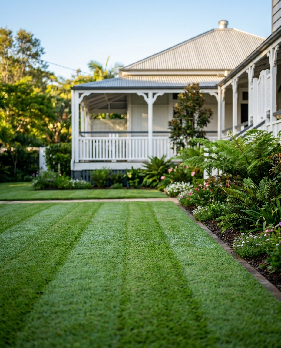 Expert mowing across Brisbane for all grass types, from Sir Walter Buffalo to Couch and Kikuyu. Razor-sharp edges included.